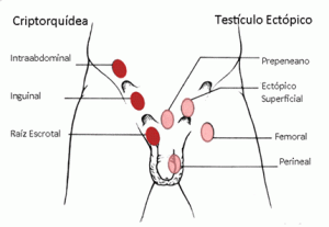 Os testículos palpáveis são divididos em grupos: criptorquídicos ( retidos em qualquer lugar do trajeto normal de descenso testicular), ectópicos ( fora do trajeto) e retráteis. Os testículos impalpáveis subdividem-se em intrabdominais, hipotróficos ou agenéticos.